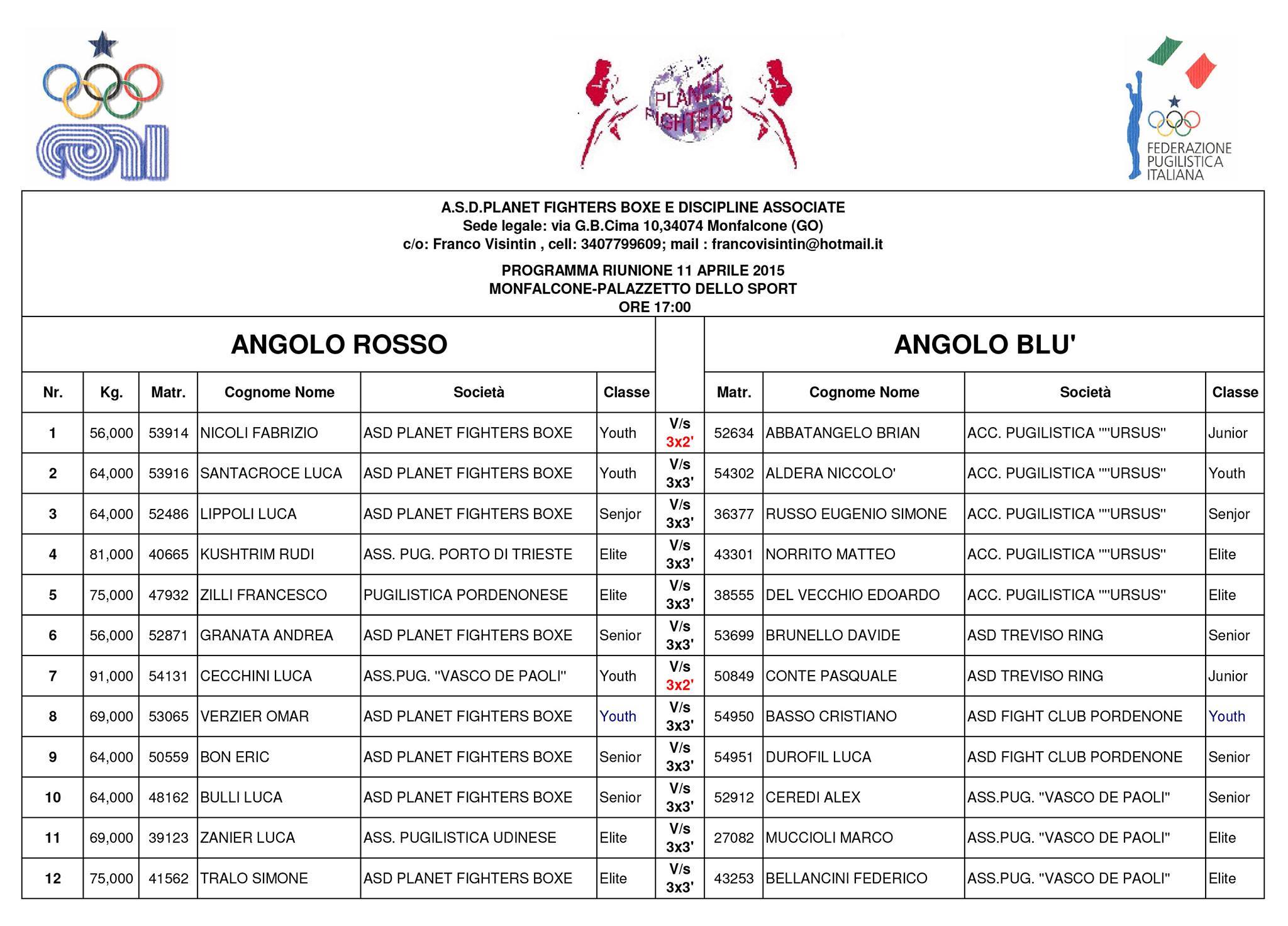 Sabato 11 aprile 2015 sul nostro ring di MONFALCONE: